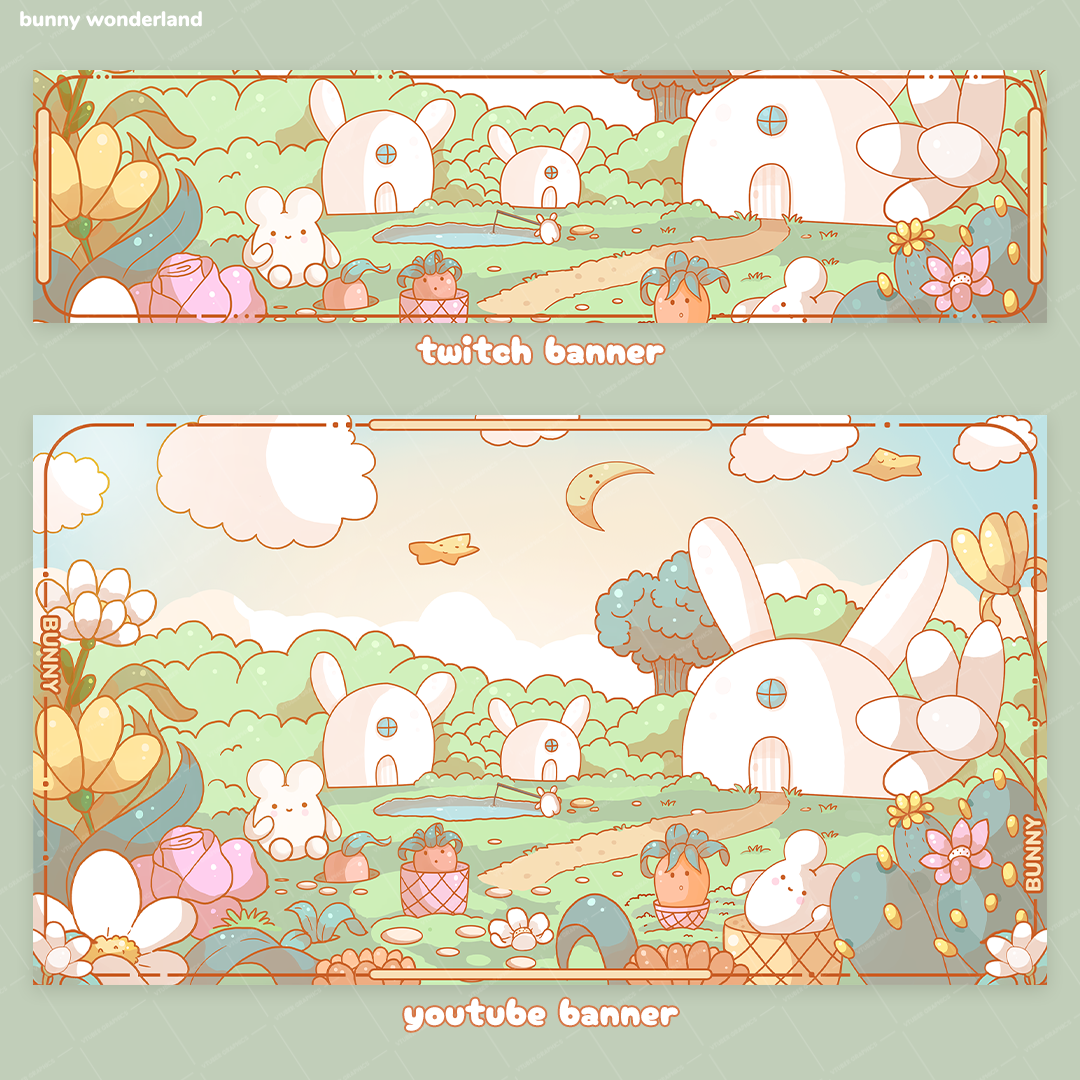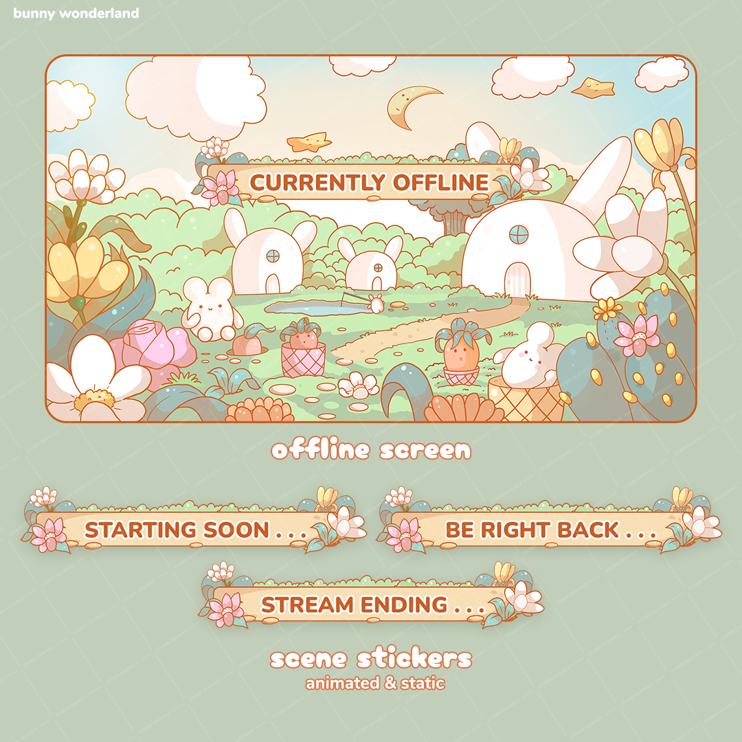 Turn your streams into a cute bunny paradise with our Bunny Wonderland Stream Package! This pack is designed for VTubers who want to bring the joy of playful rabbits in wide, open meadows to their streams. Explore a world of cute bunnies and beautiful scenery, creating a cozy and inviting atmosphere for your viewers.