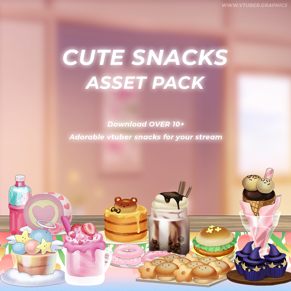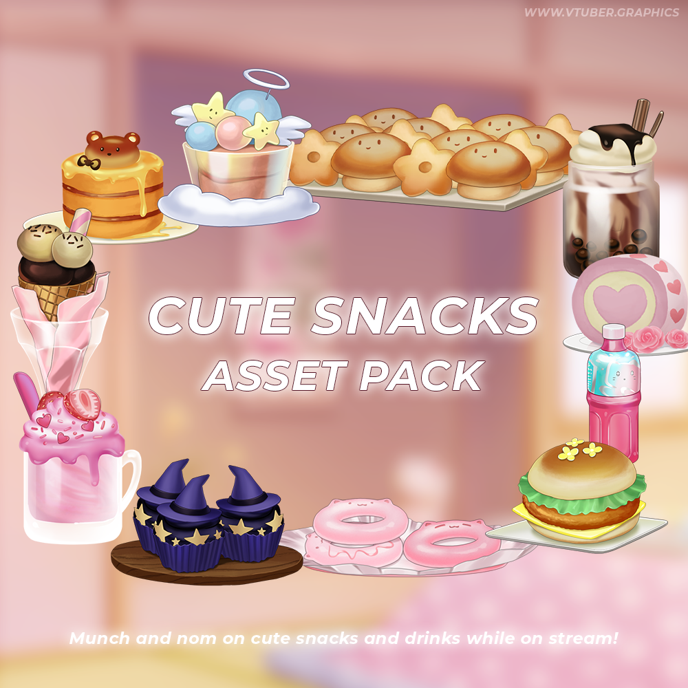 This cute snack themed vtuber asset pack includes all the snacks shown in the pictures.