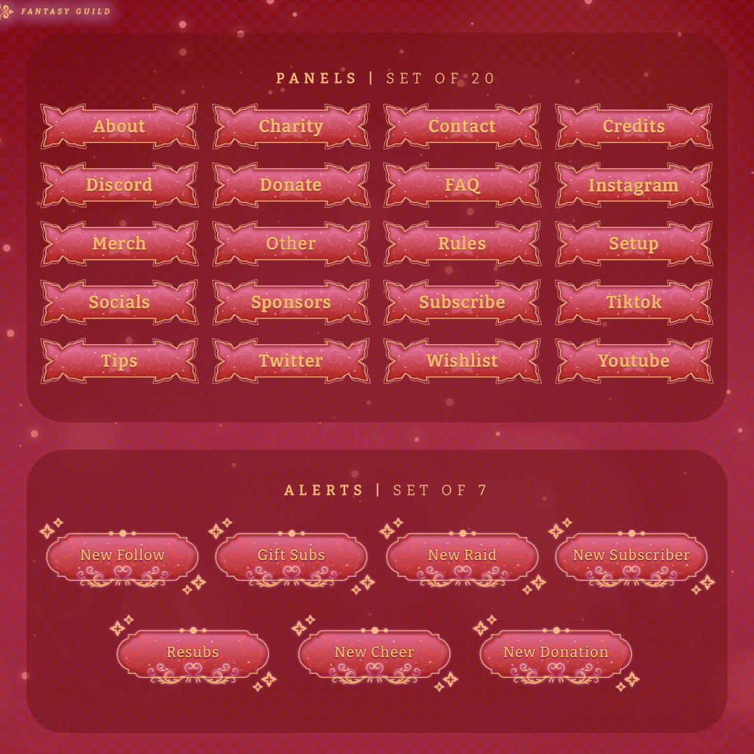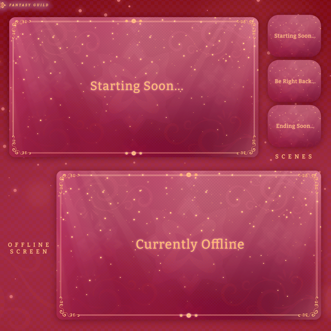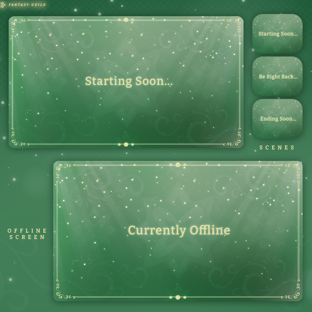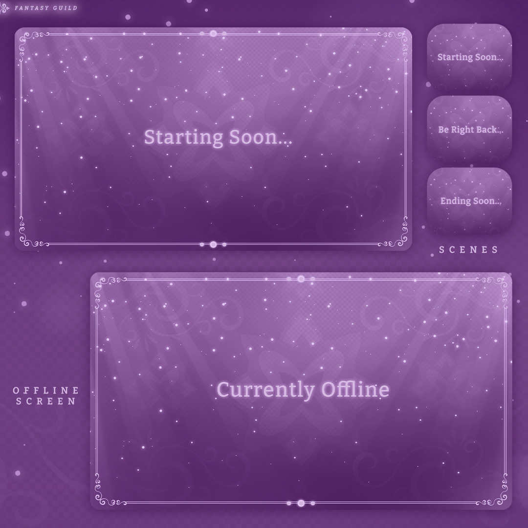 Level up your streaming game with the Fantasy Guild Stream Package! This MMORPG-inspired graphics pack is perfect for creating a mystical atmosphere for your Twitch streams. With royal colors and gold accents, we were inspired by our favorite RPG games to create this package. Digital download is available for immediate use upon checkout. Let the adventures begin!