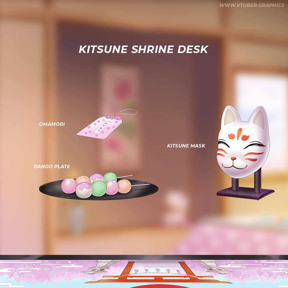 Bring a touch of traditional Japan to your vtuber stream setup with the Kitsune Shrine Desk Asset! Easy to use and set up, this digital download provides an easy way to integrate a kitsune desk directly onto your just chatting streams. Enjoy dangos, kitsunes and shrines, now on your stream with your viewers!
