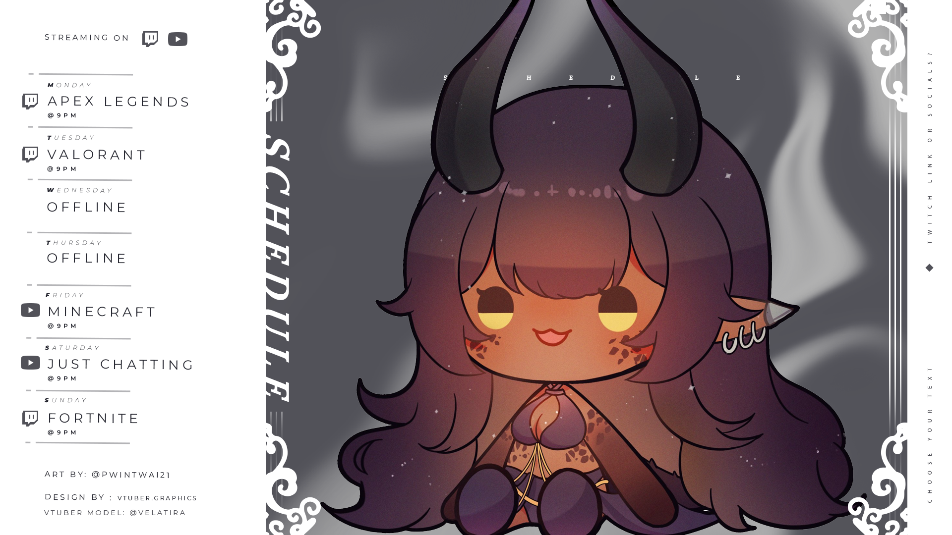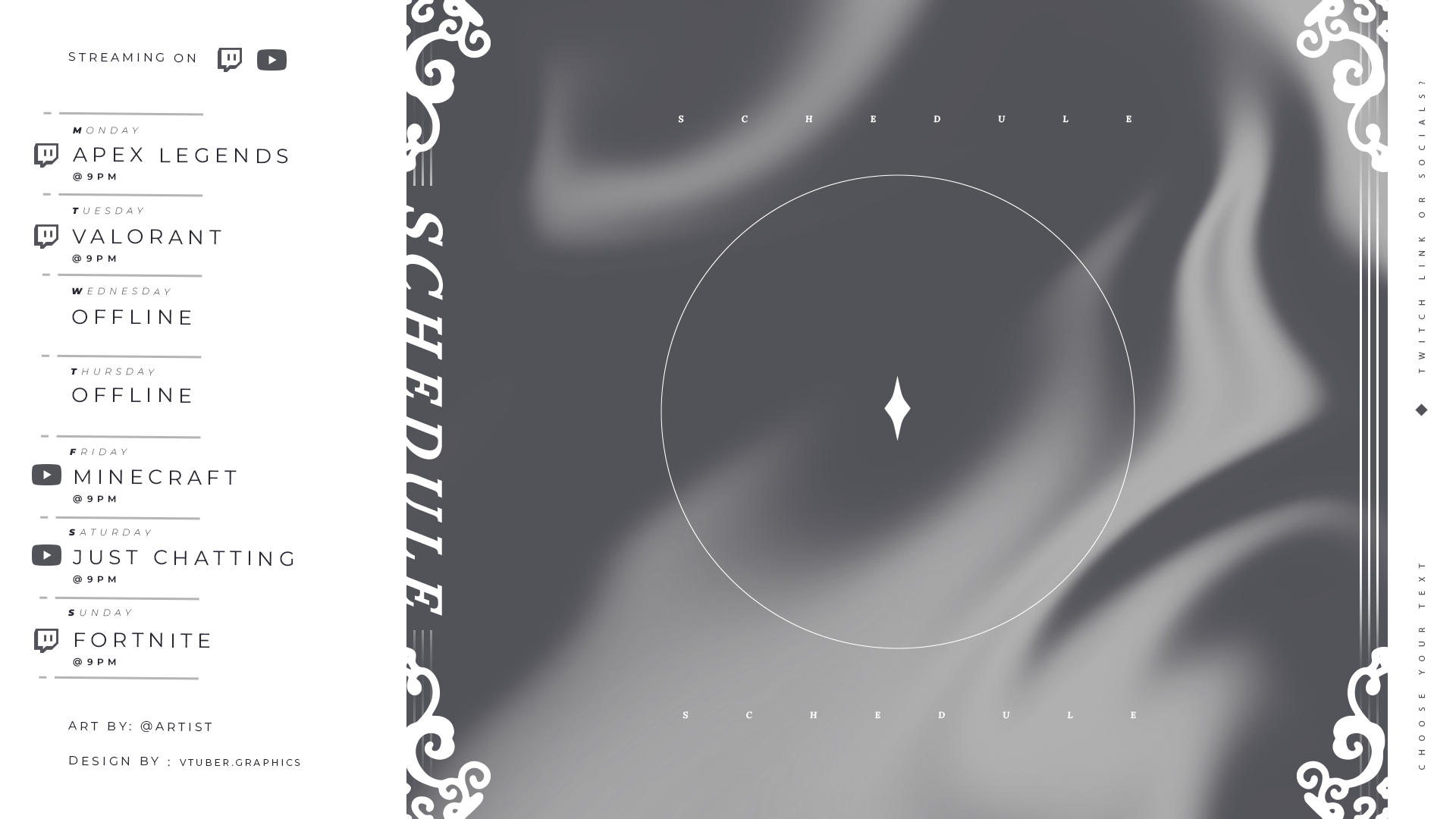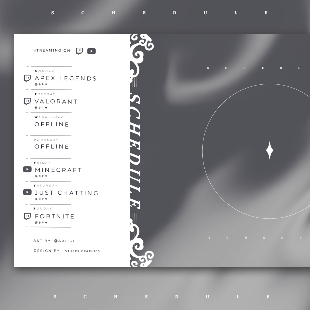 Get organized with our Monochrome Widescreen Schedule and showcase your vtuber schedule with a wide art placement!