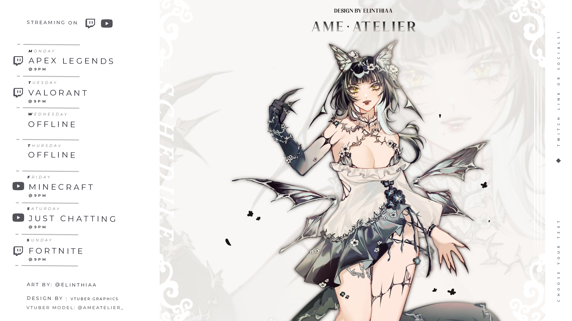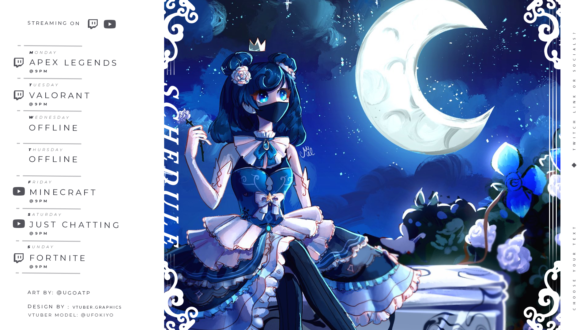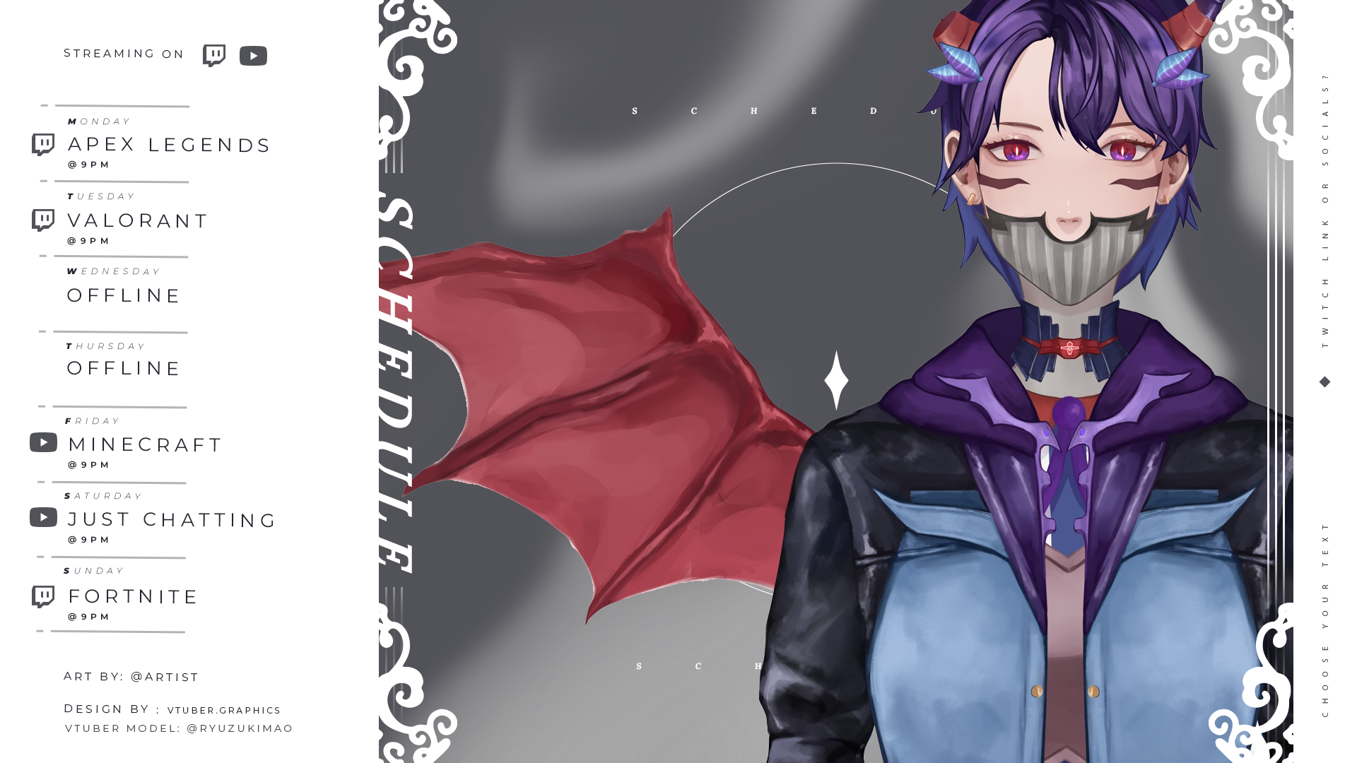 Get organized with our Monochrome Widescreen Schedule and showcase your vtuber schedule with a wide art placement!
