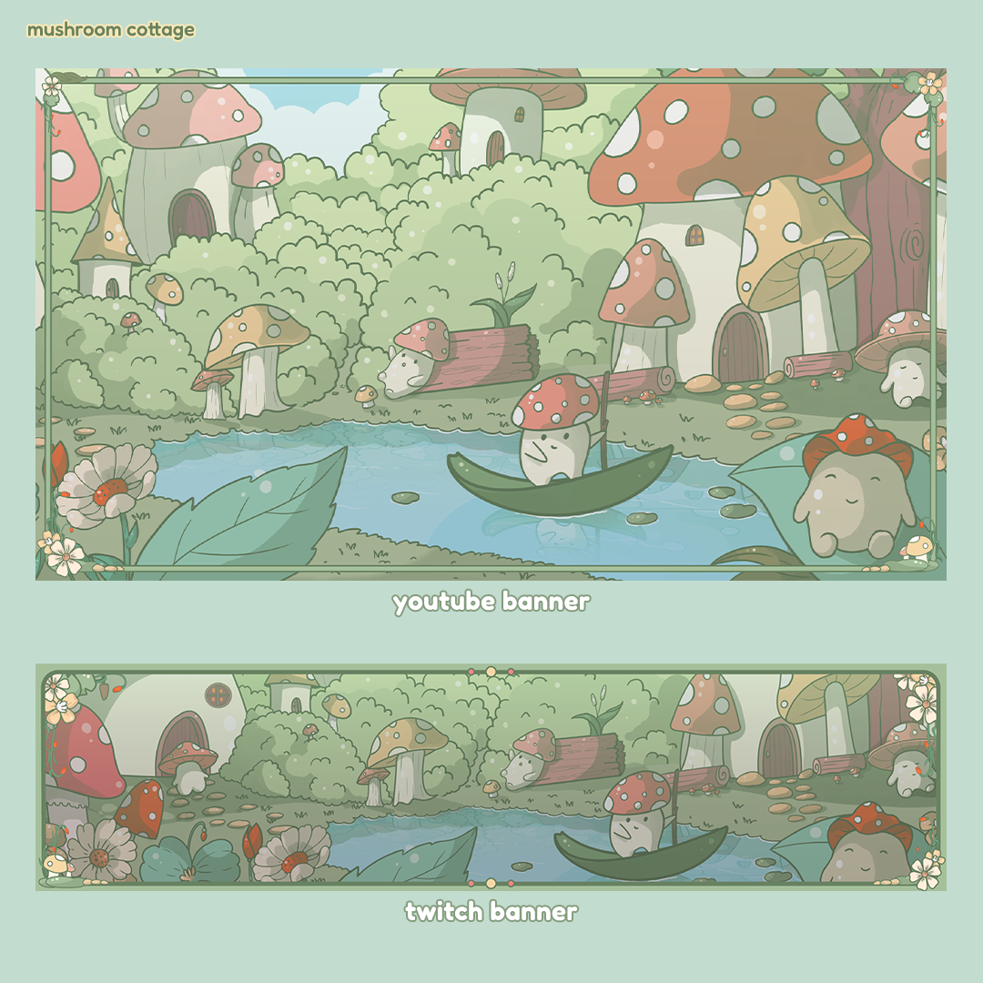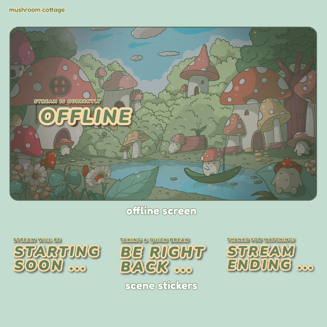 Enter a fairytale realm with our Mushroom Cottage Stream Package! Designed to bring a cozy, enchanting atmosphere to your streams, this set features picturesque mushroom cottages, vibrant greenery, and playful creatures, ensuring a captivating experience for your audience.