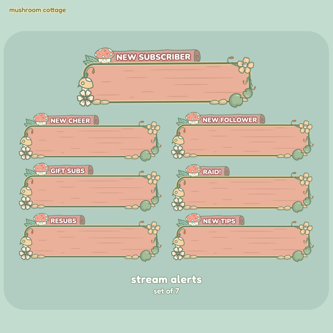 The Mushroom Cottage Stream Package includes both animated and static graphics:
