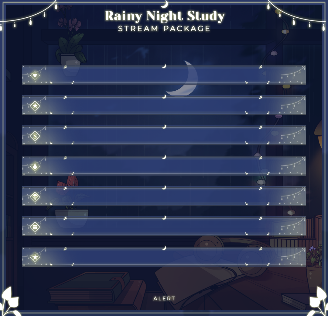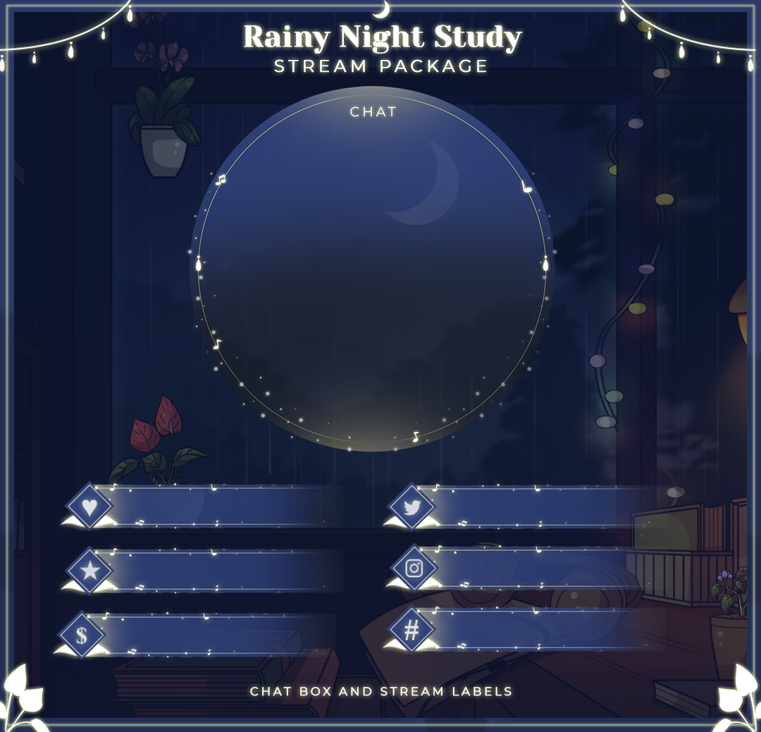Transform your streams into a calming oasis with our Rainy Night Study Stream Package, where the soothing rhythm of gentle rain meets the soft murmur of a flowing stream to create instant atmosphere. Perfect for study, ASMR, and chill streams, this pack a cozy vibes that keep viewers relaxed and engaged.