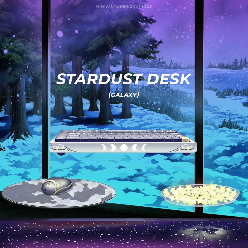 Make your virtual streams sparkle with the Stardust Vtuber Desk Asset! Capture the night sky with stars and moons, and create a beautiful celestial atmosphere for your viewers. Perfect for vtubers with a night sky theme or those who simply adore the starry sky!