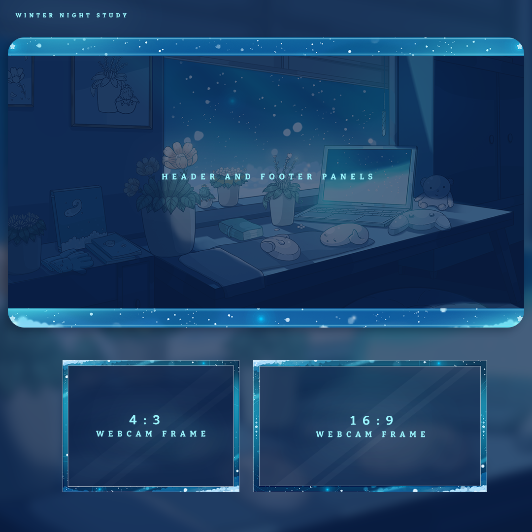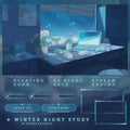 The Winter Night Study Stream Package includes both animated and static graphics: